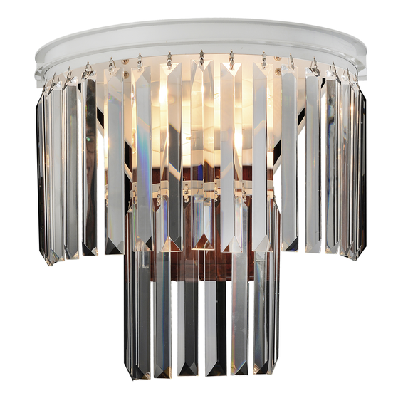 Арматура светильника сделанный из металла и окрашенный в белый матовый цвет. Декоративные подвески из прозрачного хрусталя высшего качества.