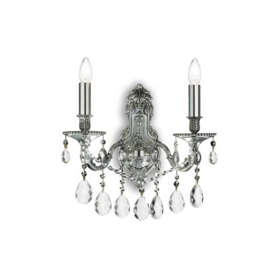 Корпус из литого металла цвета старинного серебра или золота.Восьмиугольные и круглые подвески из хрусталя с фацетом.