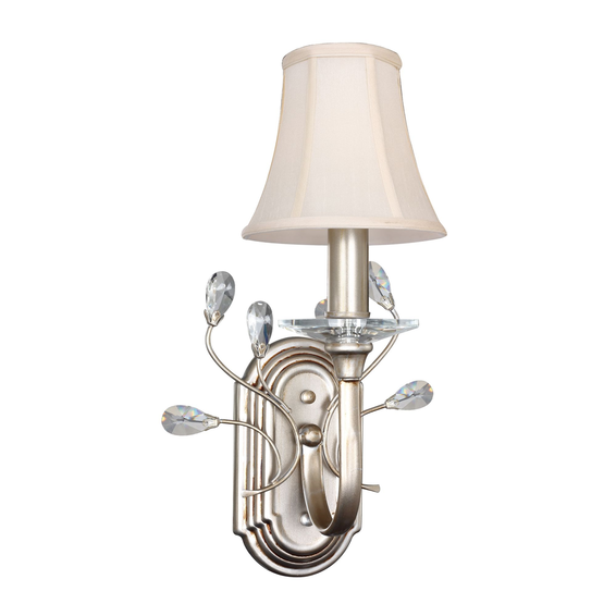 Каркас изготовлен из металла, окрашенного в цвет античное серебро, абажуры из светло-кремовой ткани, хрусталь высшего качества.