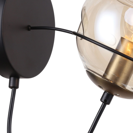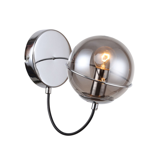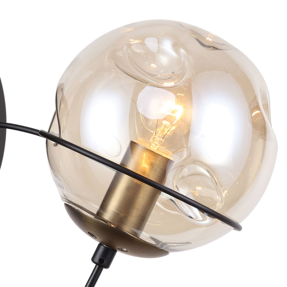 Каркас светильника из металла,хромированный,декорирован стеклянными выдувными плафонами серого цвета с зеркальным покрытием янтарного цвета с эффектом деформированных пузырей.Доступен с черным цвета каркаса,код-2202-1W .