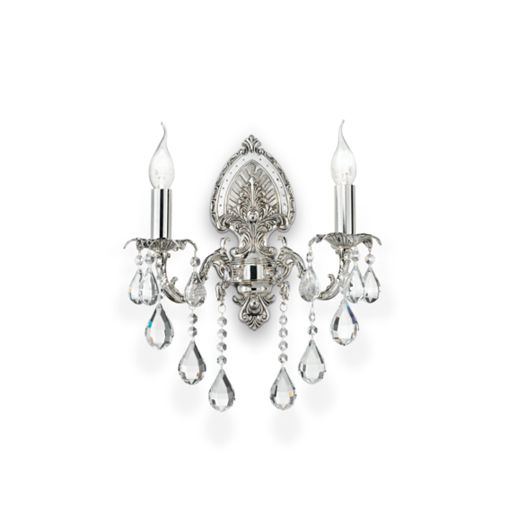 Корпус светильника из литого металла серебристого цвета под античный вид. Декоративные элементы из хрусталя с фацетом.