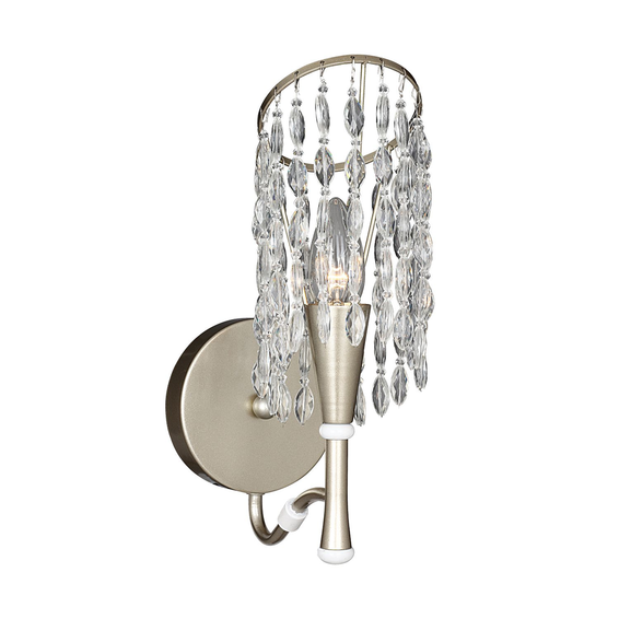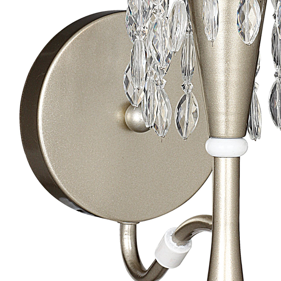 Каркас изготовлен из металла, окрашенного в золотистый цвет в сочетании с жемчужно-белым, подвески из хрустальных бусин оригинальной формы.