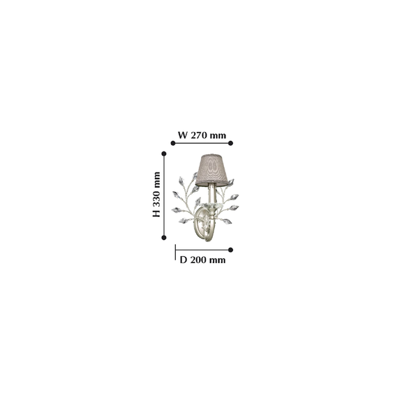 Арматура изготовлена из металла, окрашенного в светло-золотой цвет, абажуры из шелковой ткани тепло-серого цвета, хрустальные подвески высшего качества.