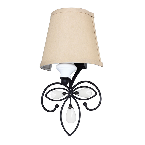 Каркас изготовлен из металла, окрашенного в черный цвет с декоративными элементами белого цвета, тканевые абажуры из бежевого хлопка.