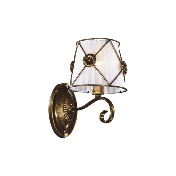 Каркас светильника из металла коричневого цвета.Плафон из органзы белого цвета.