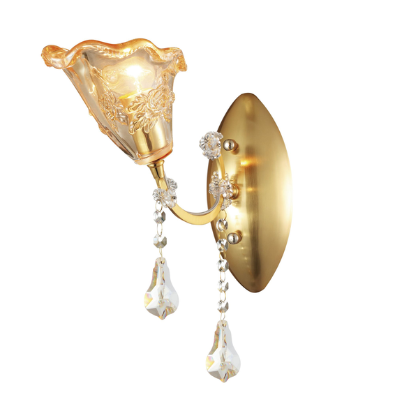 Корпус из металла золотого цвета.Чаши и подвески из хрусталя цвета золотого шампанского.