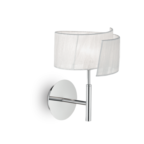 Арматура из хромированного металла. Абажуры с металлическим каркасом окрашены в белый цвет и обтянуты белой лентой из органзы.