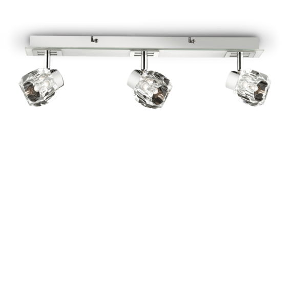 Арматура и основание светильника изготовлены из хромированного металла. Регулируемые рассеиватели - из штампованного прозрачного стекла.