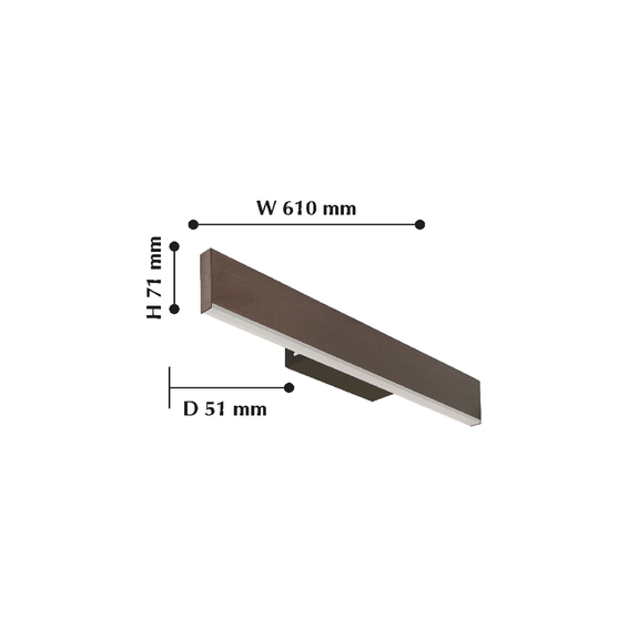 Каркас изготовлен из металла, окрашенного в кофейный цвет со структурой дерева, рассеиватель LED, белый, акриловый.