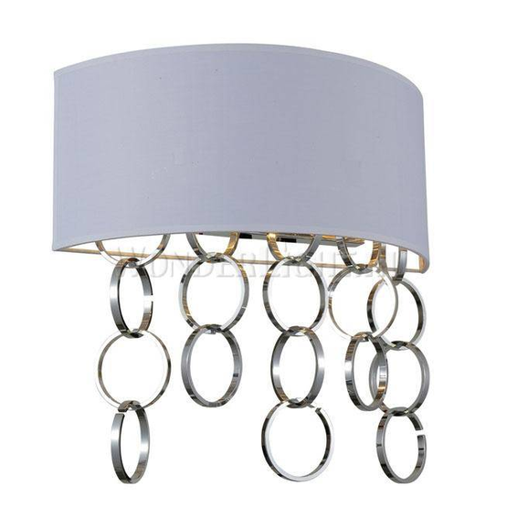 Арматура светильника сделана из металла,окрашена в хром.Плафон из ткани белого цвета,декоративные кольца из пластика,хромированного цвета.