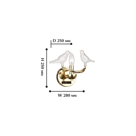 Арматура и крепежные детали из металла золотого цвета, декоративные птички из выдувного стекла.Доступен в белом цвете код- 1751-1W.
