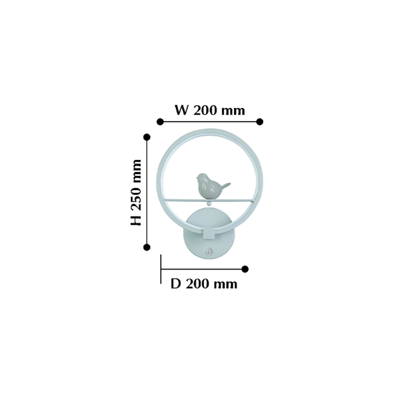 Каркас светильника из металла ,белого цвета с акриловой фигуркой птички,светильник с выключателем.Доступен в черном цвете,код-2063-1W.