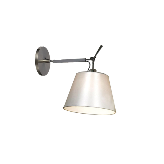 Каркас изготовлен из металла, окрашенного в серебряный цвет, абажур из белой ткани.