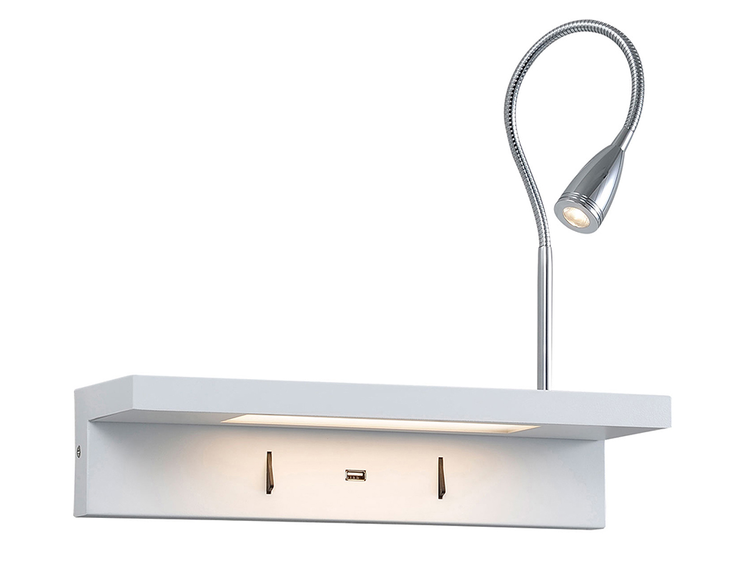 Модель со встроенным выключателем относится к коллекции 14900. Осветительный элемент встроен в конструкцию и не требует приобретения дополнительных лампочек. Есть два вида светильника - в исполнении с левой и правой стороной.