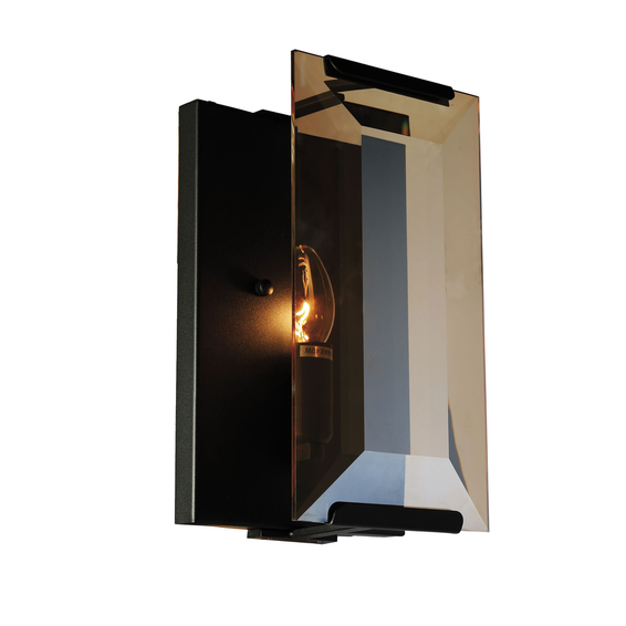 Арматура выполнена из металла, окрашенного в черный матовый цвет, стеклянные подвески с фацетом янтарного оттенка.