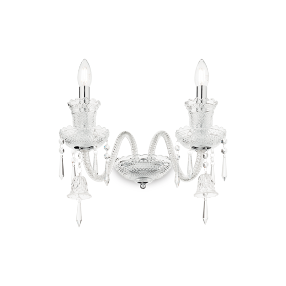 Арматура из хромированного металла. Декоративные элементы из дутого стекла и хрусталя с фацетом. Цепь скрыта бархатной тканью.