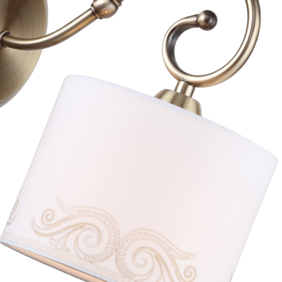 Каркас светильника из металла,в антично-бронзовом цвете,оформлен декоративными элементами из бронзы и тканевыми плафонами с классическим узором.