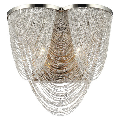 Арматура светильника сделана из металла, хромированная. Декоративныэ хромированные металлические цепочки.