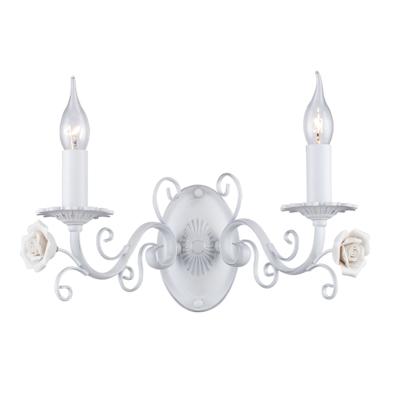 Каркас светильника сделан из металла белого матового цвета,покрыт серебрянной патиной.Фарфоровые розочки бнлого цвета с нежным кремовым оттенком.