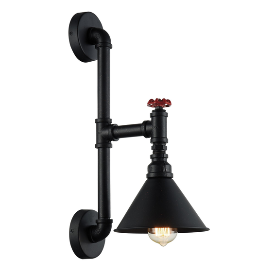 Арматура выполнена из металла,окрашенного в черный матовый цвет, с вкраплениями более светлого тона, кран красного цвета.