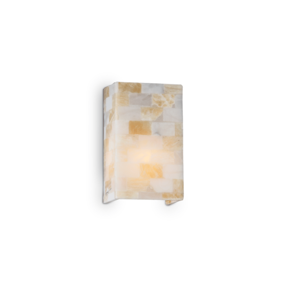 Арматура из металла окрашенного в белый цвет. Рассеиватель изготовлен полностью из алебастровых натуральных элементов, сверху и снизу открыт.