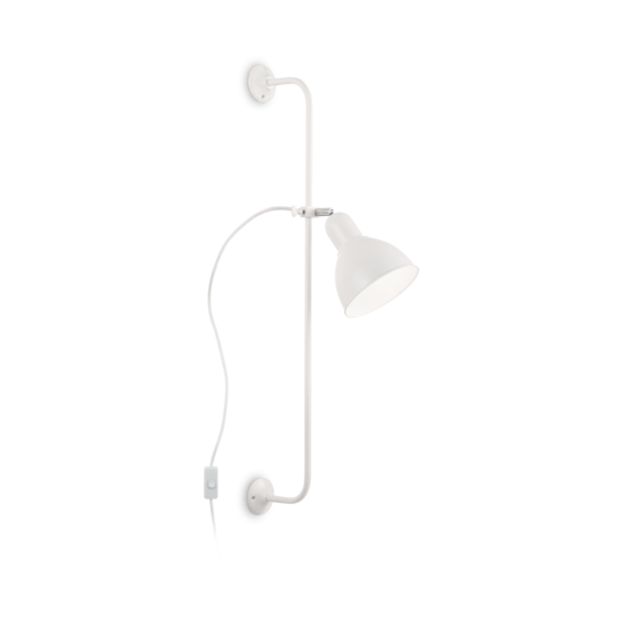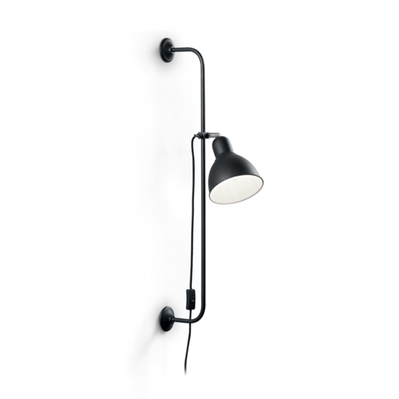 Арматура из металла в матовой краске. Подвижный элемент изготовлен в хроме. Рассеиватель регулируемый. Провод из ткани с выключателем и штепсельной вилкой. Доступен в черном цвете.
