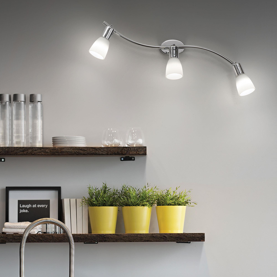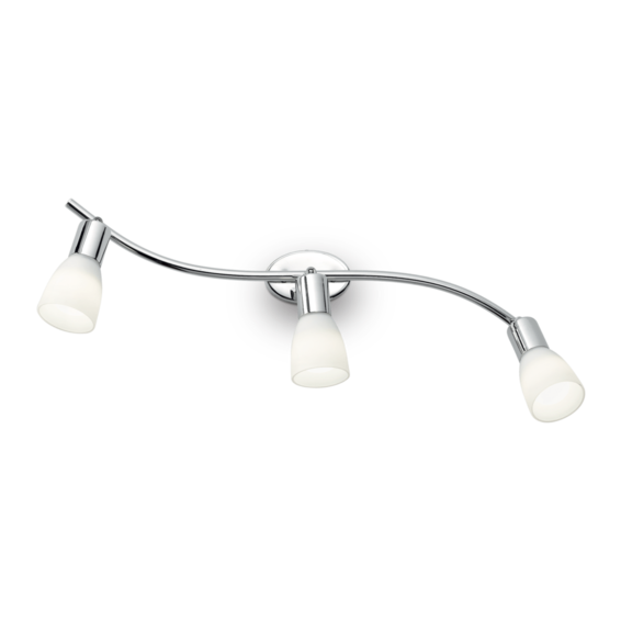 Арматура из хромированного металла. Корпус светильника регулируемый. Рассеиватель из белого дутого матового стекла.