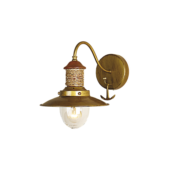 Каркас изготовлен из металла, окрашенного в золотисто-коричневый цвет, дерево цвета орех, декорация из веревки.