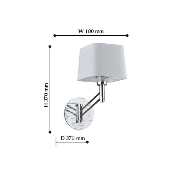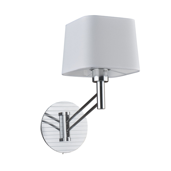 Арматура светильника из металла,хромированная.Тканевый абажур из белого хлопка,с выключателем.