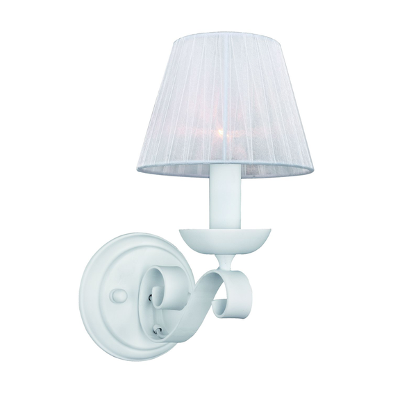 Каркас светильника из металла белого цвета и дополнены абажурами из белой органзы.