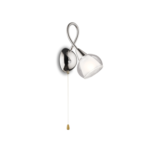 Арматура из хромированного металла и гибкими рожками. Рассеиватель из прозрачного дутого стекла Pуrex с отшлифованной внутренней частью.