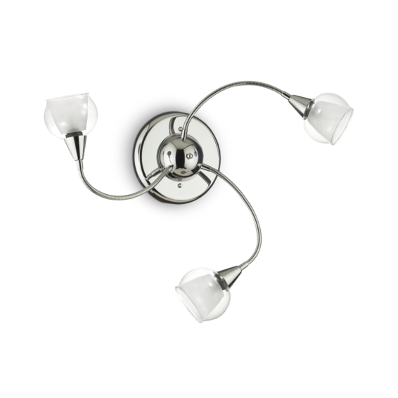 Арматура из хромированного металла и гибкими рожками. Рассеиватель из прозрачного дутого стекла Pуrex с отшлифованной внутренней частью.