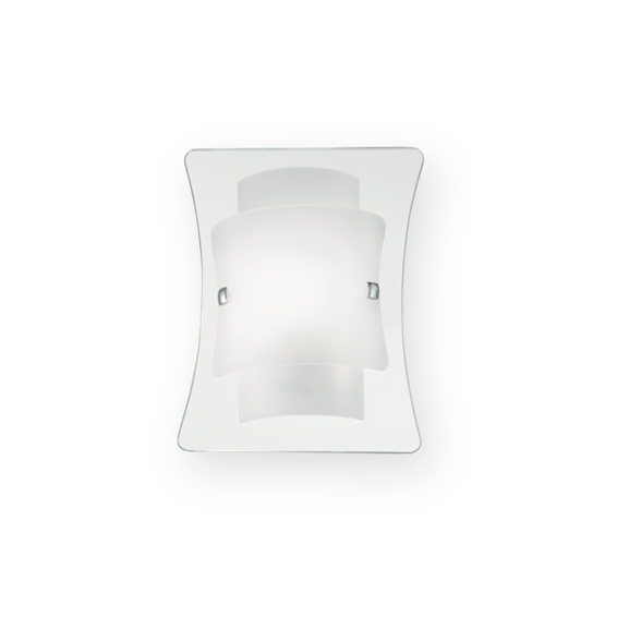 Рассеиватель составлен из трёх стёкл. Одно прозрачное и ровное, а два остальных отшлифиваны кислотой и изогнуты в верхней части. Закрепляющие плафон элементы из хромированного металла.