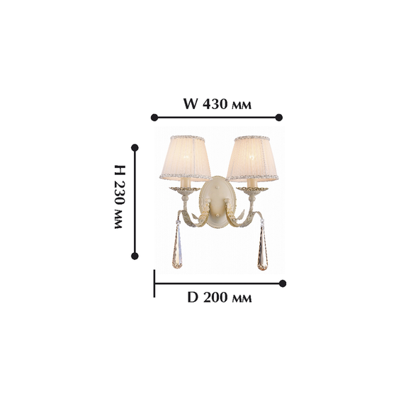 Каркас светильника из металла цвета слоновой кости,окрашенный золотыми штрихами,абажуры из белой ткани.Декоративные подвески из хрусталя высшего качества,цвета шампанского.
