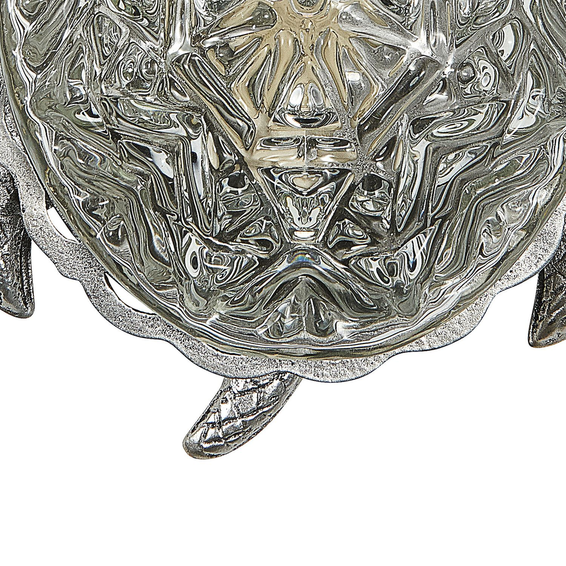 Корпус светильника из металла окрашен в цвет серебра,узорное стекло стилизовано под хрусталь.