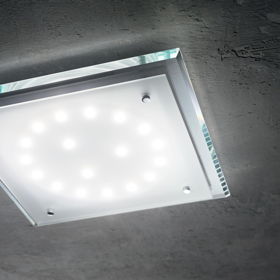 Арматура из хромированного металла. Рассеиватель двойной: первая пластина прозрачная, а внешняя прескоструйной обработки.
