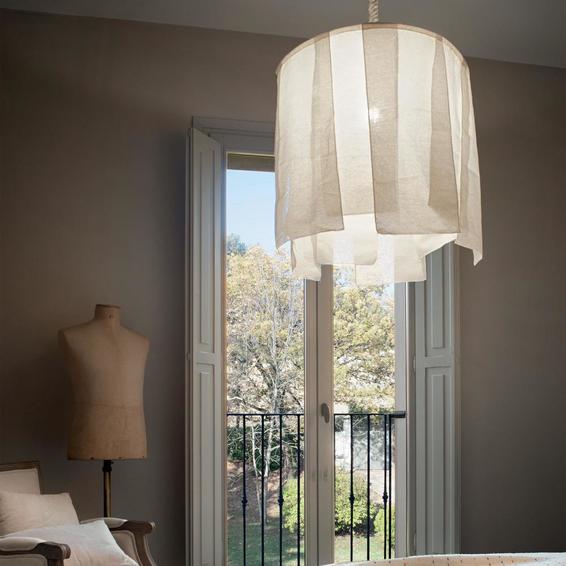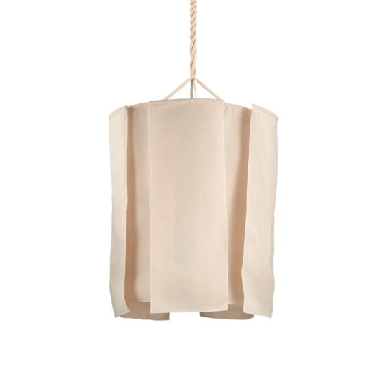 Потолочная чаша из металла матовой белой краски. Провод завернут верёвками. Абажур из натуральной взаимозаменяемой ткани, стирается.