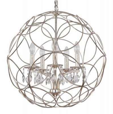 Каркас изготовлен из металла, фольгированный в сусальное серебро, хрустальные подвески прозрачного цвета.