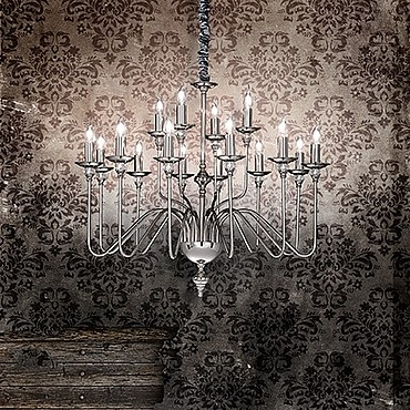 Арматура из металла с никелевым покрытием. На концах ражков декоративные элементы из хрусталя с фацетом. Цепь скрыта бархатной тканью.