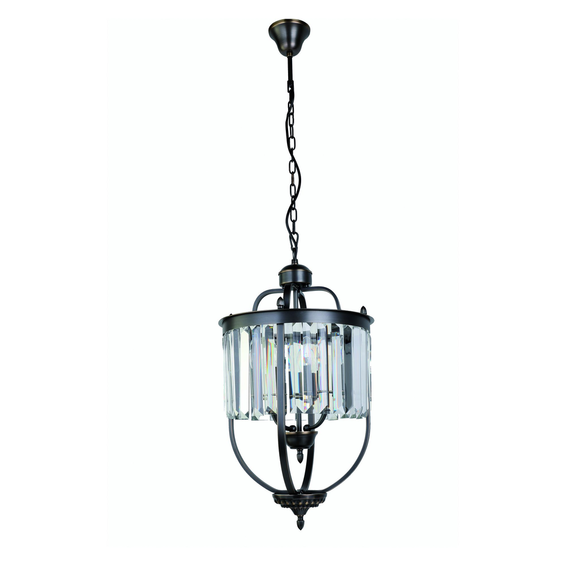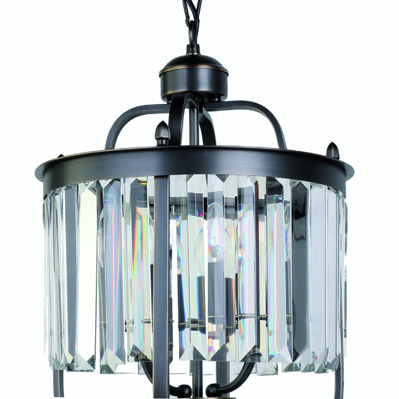 Корпус светильника из металла коричневого цвета с золотой патиной, хрусталь высшего качества в виде удлиненных призм.