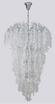 Каркас изготовлен из металла, окрашенного в матовое золото, хрустальные подвески прозрачного и янтарного цвета.