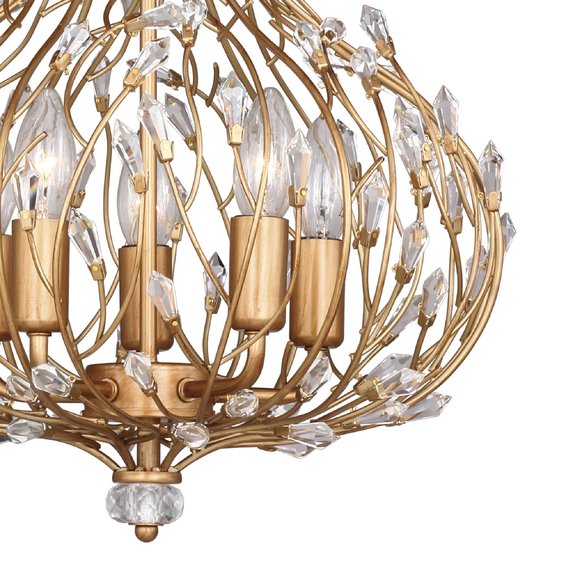 Арматура светильника из металла, окрашенный в золотисто-коричневый .Подвески из прозрачного хрусталя высшего качества.