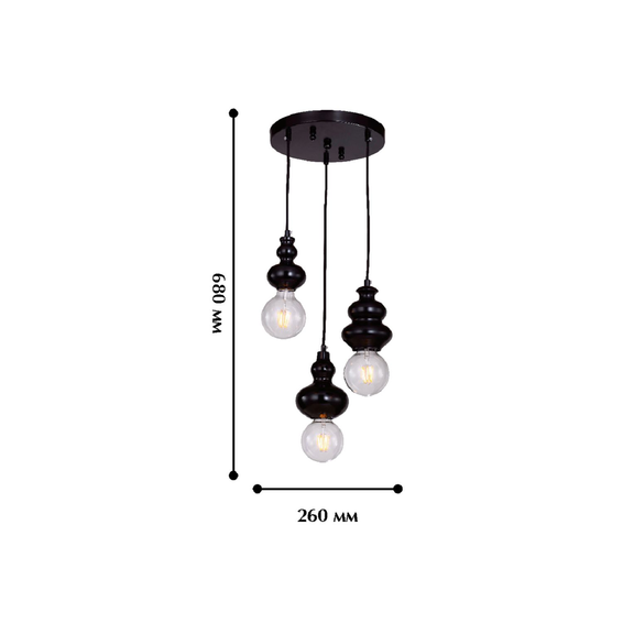 Каркас светильника из металла. Коллекция представлена в глянцевом черном цвете. Конструкция подвесной люстры позволяет регулировать высоту изменением длины провода.