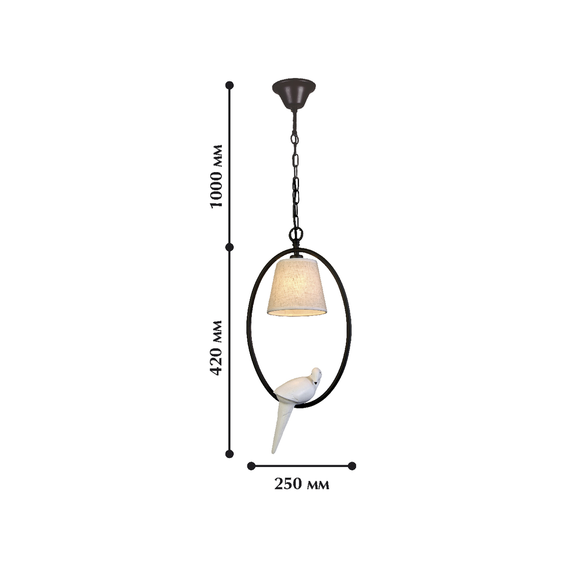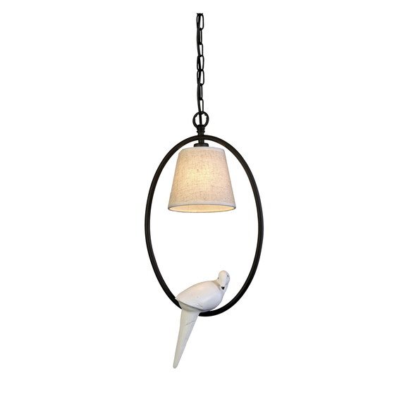 Арматура из металла черного цвета, абажуры - из ткани под рогожку, декоративные элементы птичек изготовлены вручную из гипса.
