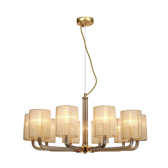 Каркас выполнен из стекла белого цвета, абажур из белой органзы. Доступен в стекле коньячного цвета и с абажурами янтарного оттенка - BIRRA 1860-10P.
