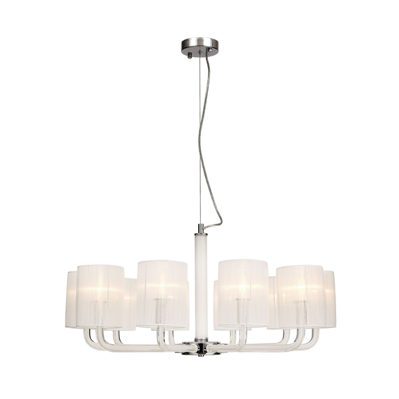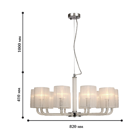 Каркас выполнен из стекла белого цвета, абажур из белой органзы.