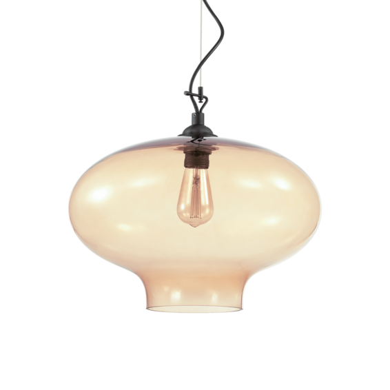 Арматура из металла чёрной краски. Рассеиватель из стекла, янтарное, прозрачное или сизое, дутое ручной работы.