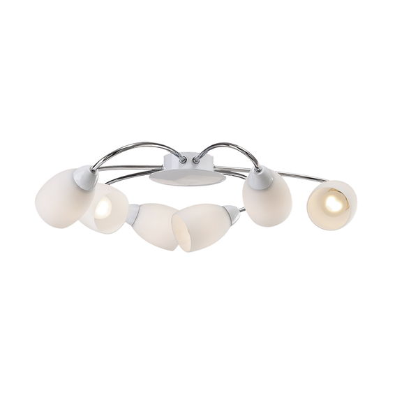 Крепежная деталь светильника из металла и окрашенный белой эмалью, корпус хромированный. Плафоны из стекла, матовые.