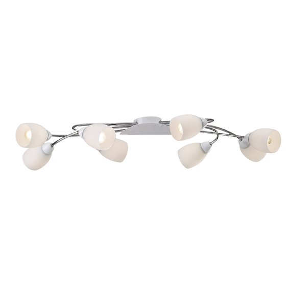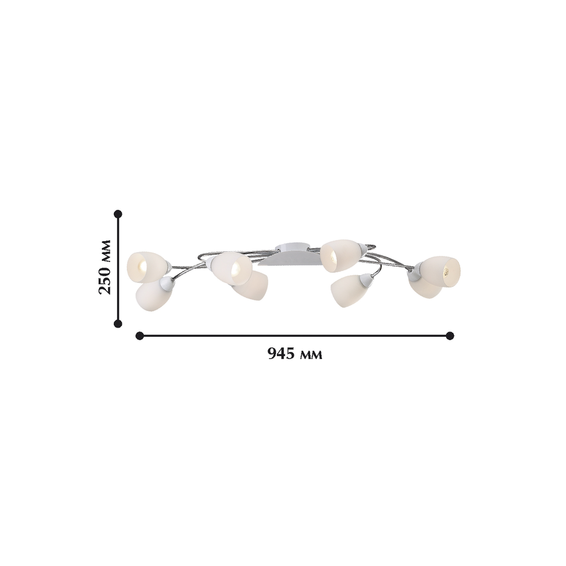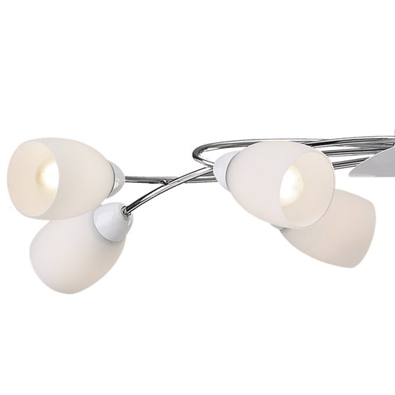 Крепежная деталь светильника из металла и окрашенный белой эмалью, корпус хромированный. Плафоны из стекла, матовые.