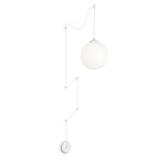 Арматура из металла матовой краски. Провод из ткани по 12 метров с 6 крепежами. Рассеиватель из дутого белого матового стекла.